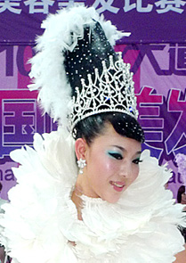 2010沈陽(yáng)青年職業(yè)技能大賽美容美發(fā)比賽暨全國(guó)青年美容美發(fā)邀請(qǐng)賽新娘化妝組冠軍、盤錦麗人藝術(shù)婚紗影樓參賽選手 張靜的獲獎(jiǎng)作品